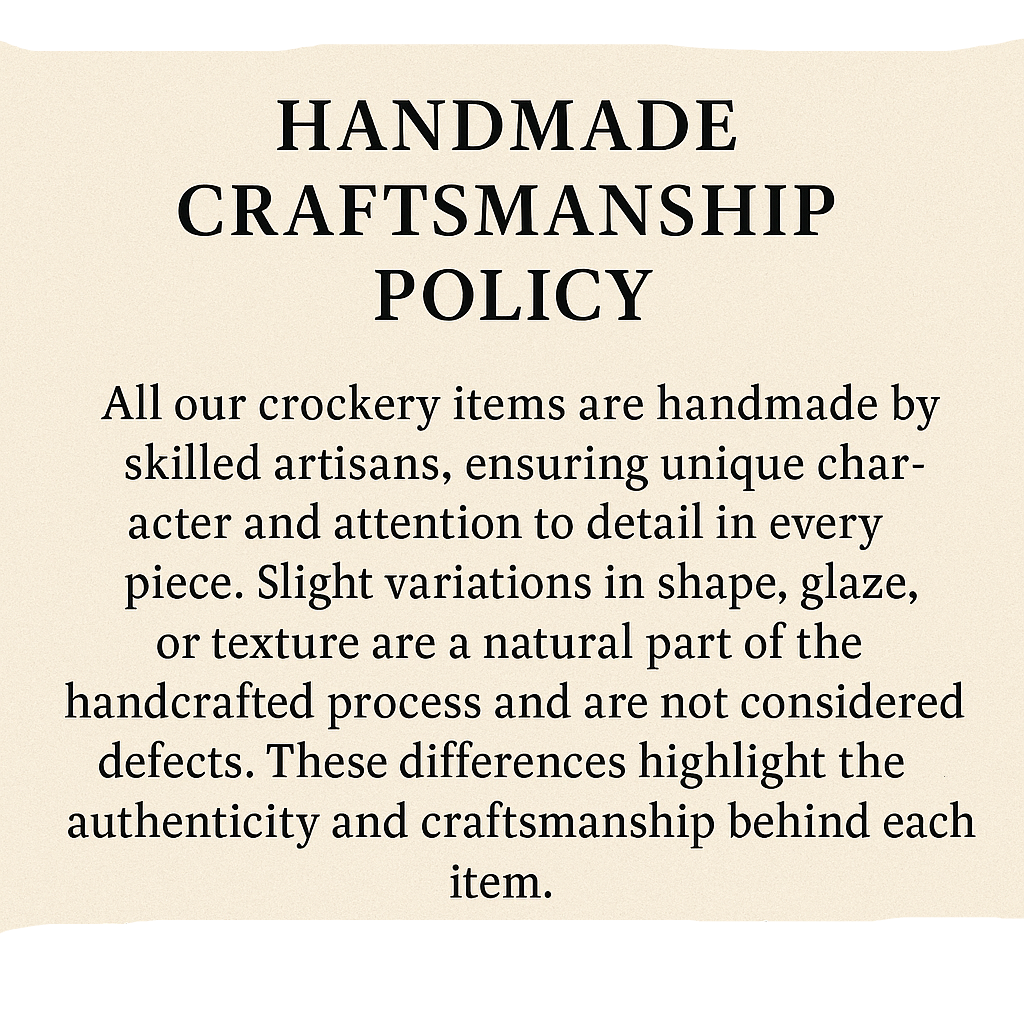 All our crockery items are handmade by skilled artisans, ensuring unique character and attention to detail in every piece.